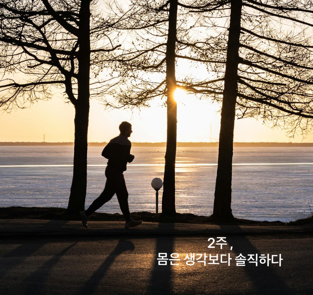 러닝을 시작한 지 2주가 지났습니다. 처음에는‘운동을 해야 한다’,‘건강해져야 한다’,‘살을 빼야 한다’ 처럼 의무감에 가까운 마음으로 뛰러 나갔습니다.좋으니까 해야 한다는 생각이 더 컸죠. 그런데 2주가 지난 지금은 다릅니다.빨리 러닝을 하러 가고 싶고, 지친 몸을 달리기로 깨우는 그 기분을 놓치기 싫어졌습니다. 1. 숨이 덜 찬다 예전에는 계단 몇 개만 올라도 숨이 찼고,오후 4시쯤 되면 체력이 급격히 떨어져 […]
